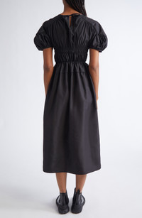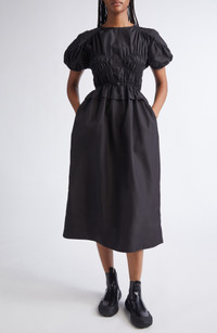 Cecilie Bahnsen Betsy Ruched Puff Sleeve Drawcord Waist Recycled Faille Dress in Black at Nordstrom