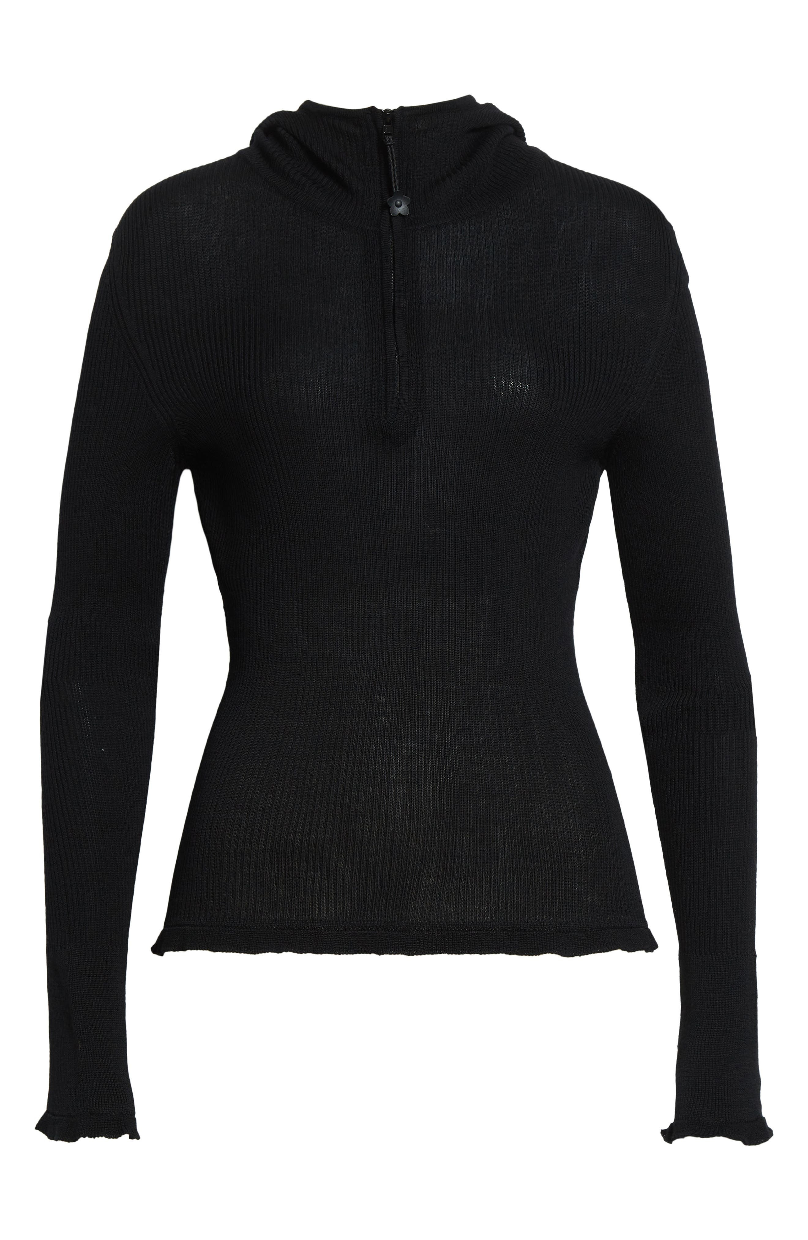 Cecilie Bahnsen Elma Hooded Rib Merino Wool Half Zip Sweater in Black Summer Merino Knit at Nordstro