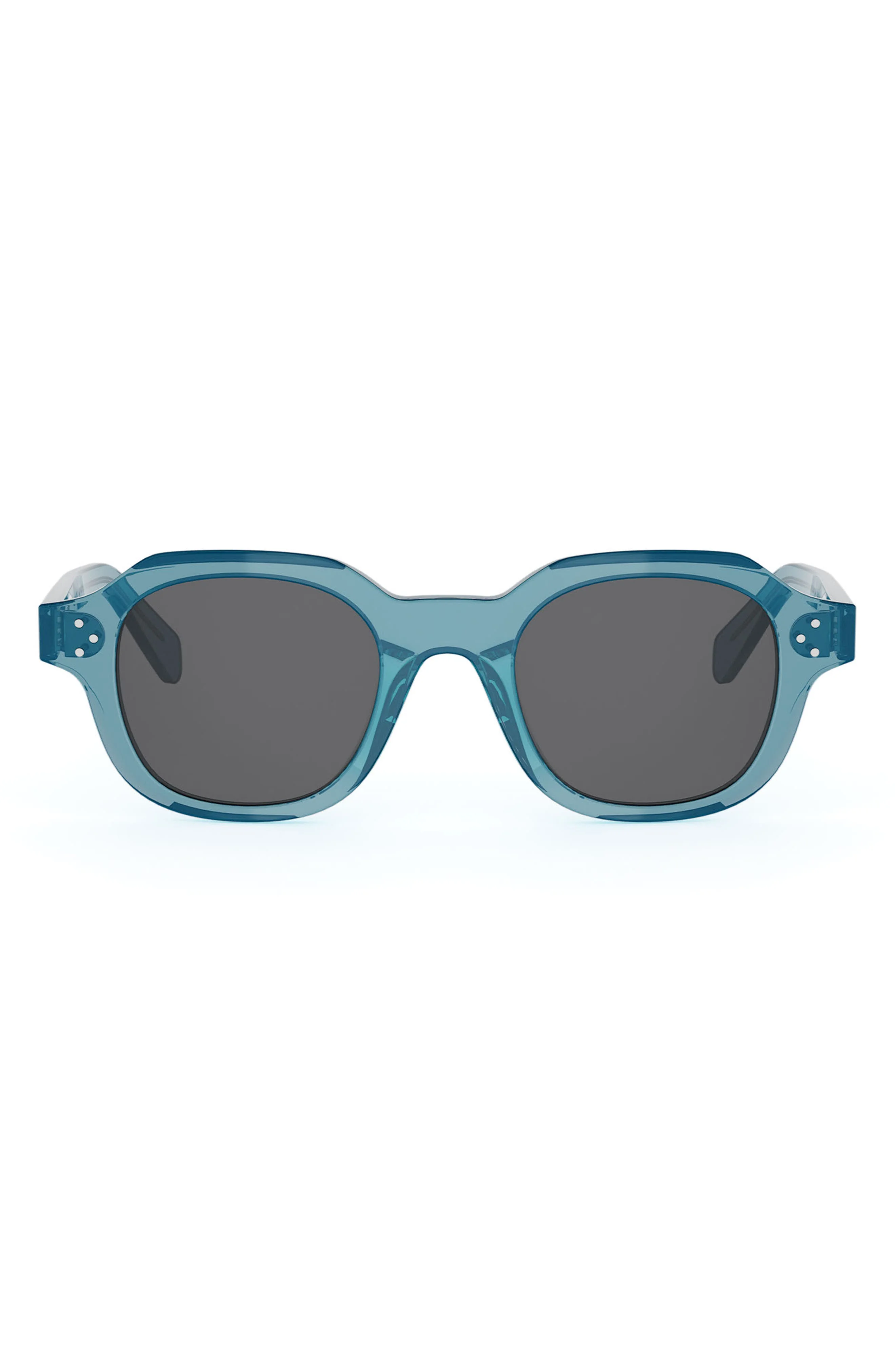 CELINE 3 Dots 48mm Round Sunglasses in Shiny Light Blue /Blue at Nordstrom