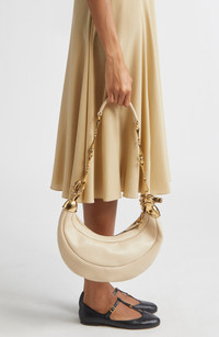 Inspired by the equestrian world, this leather hobo bag in a saddle silhouette is framed with an intricately wrought horse head and tail that anchor the horsebit-chain strap. Top zip closure Chain shoulder strap Interior wall pocket Leather Made in Italy Designer Handbags This brand has B Corp certification, representing business practices with emphasis on social and environmental performance, accountability and transparency This brand meets Nordstrom Responsible Brands criteria: brand adheres to responsible social and environmental practices