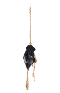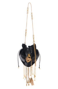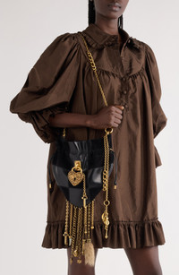 Making its debut on the maison's fall '25 runway, this drawstring-cinched heart-shaped bag is made from a mix of grained buffalo leather and goatskin suede. A prominent ornamental padlock and dangling chains with a mix of charms add an opulent element to the look. Drawstring closure Chain shoulder strap Leather Made in Italy Designer Handbags