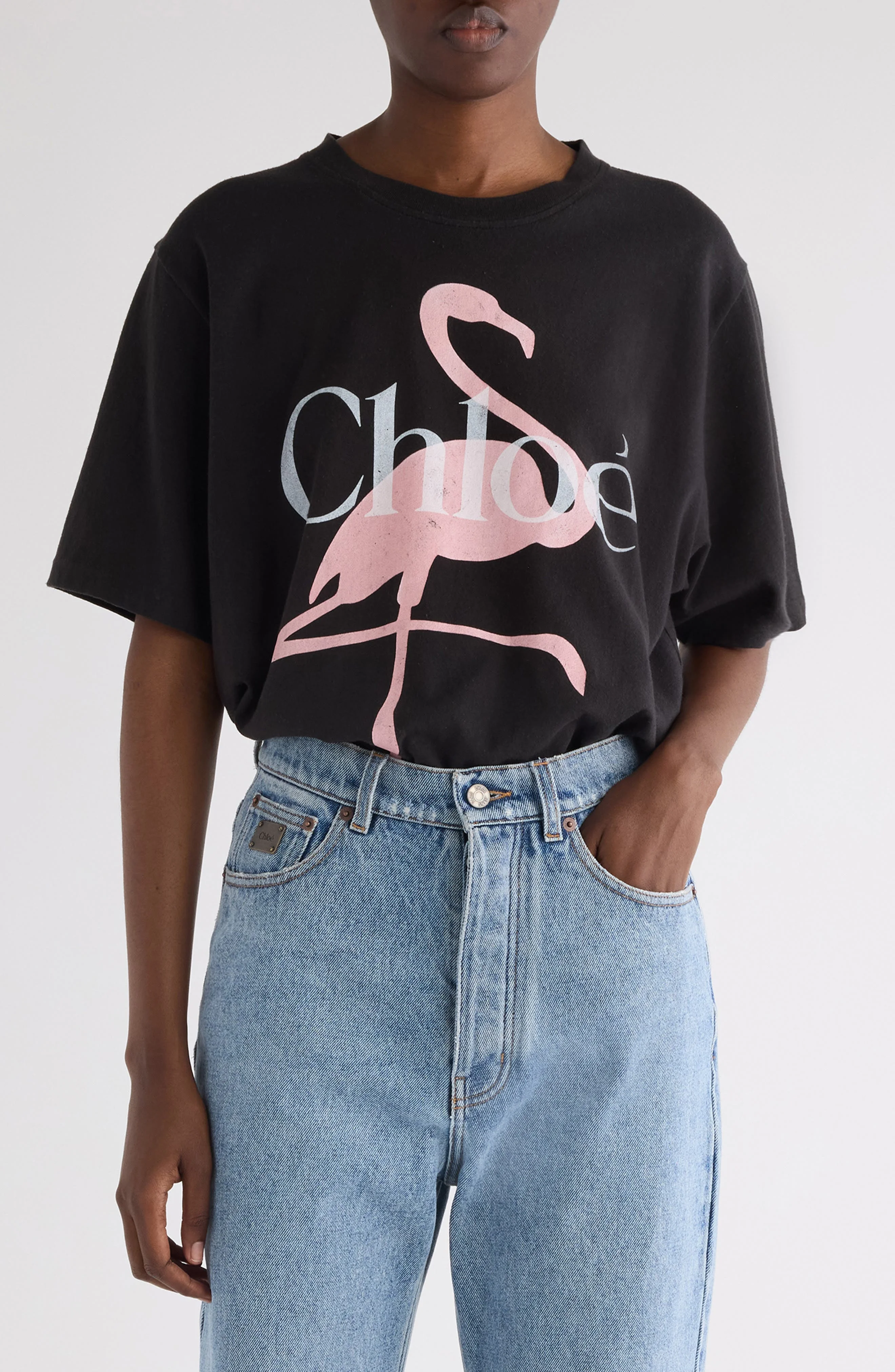 Chloé Flamingo Organic Cotton Graphic T-Shirt in Ash Black at Nordstrom