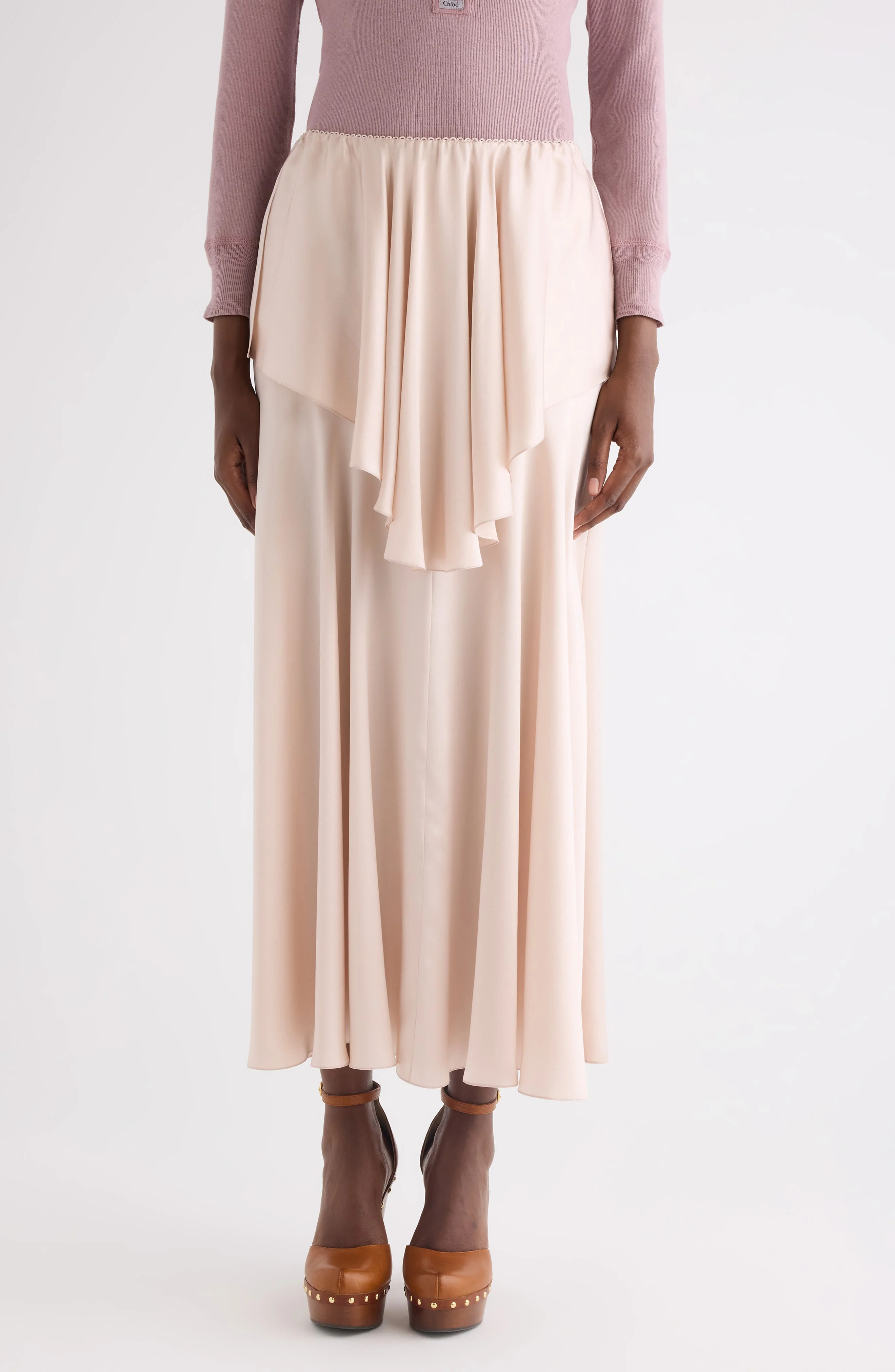 Chloé Fluid Washed Silk Satin Layered Midi Skirt in Rose Dust at Nordstrom