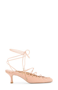 Chemena Kamali took inspiration from the world of dance to design this ghillie-laced pump that was featured prominently on Chloe's spring '25 runway. 2 1/4" (58mm) heel Wraparound ankle strap with tie closure Leather upper, lining and sole Made in Italy Designer Shoes
