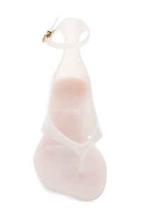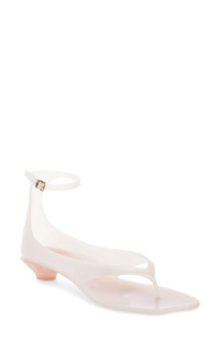 An adjustable ankle strap secures this jelly sandal crafted in a thong silhouette set on a scalloped conical heel. 1" (25mm) heel (size 37) Adjustable ankle strap with buckle closure TPU upper, lining and sole Made in Italy Designer Shoes