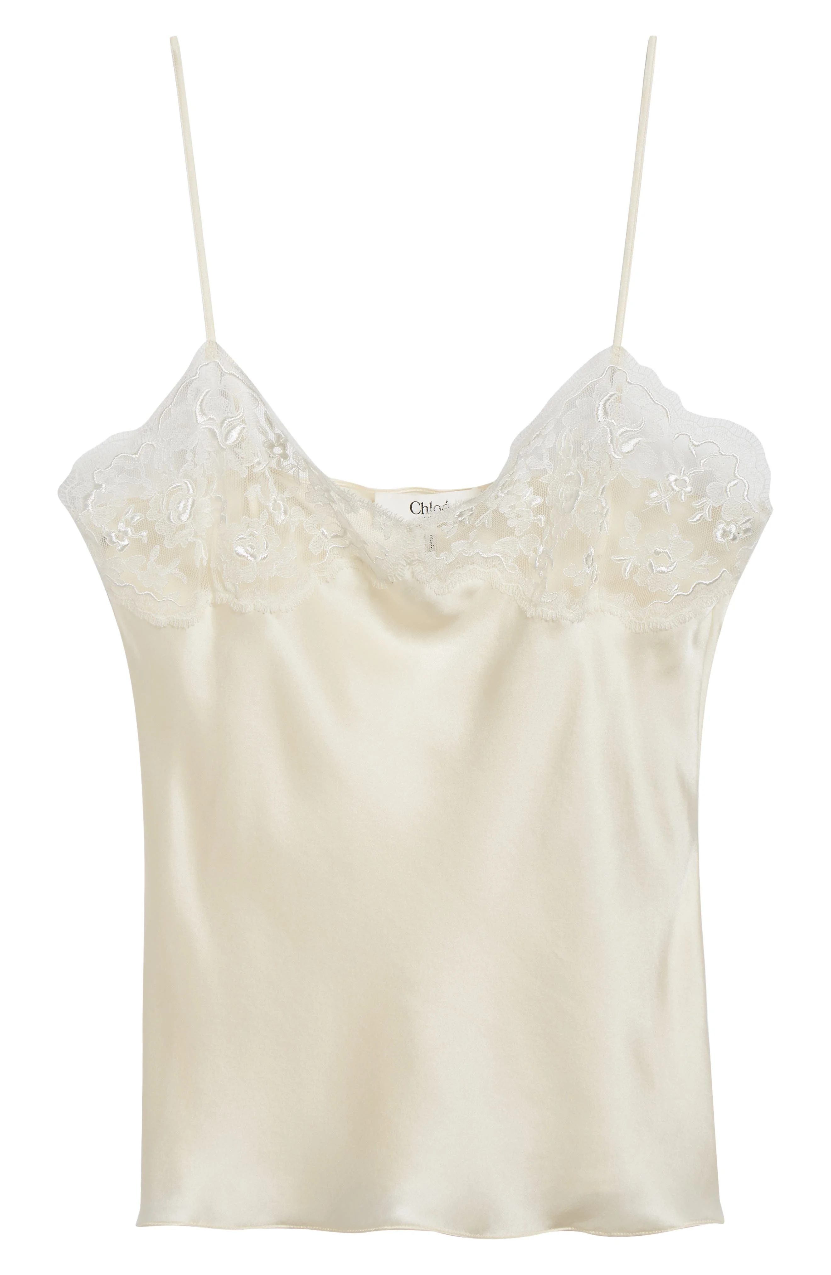 Chloé Lace Trim Silk Satin Camisole in 112 Eden White at Nordstrom