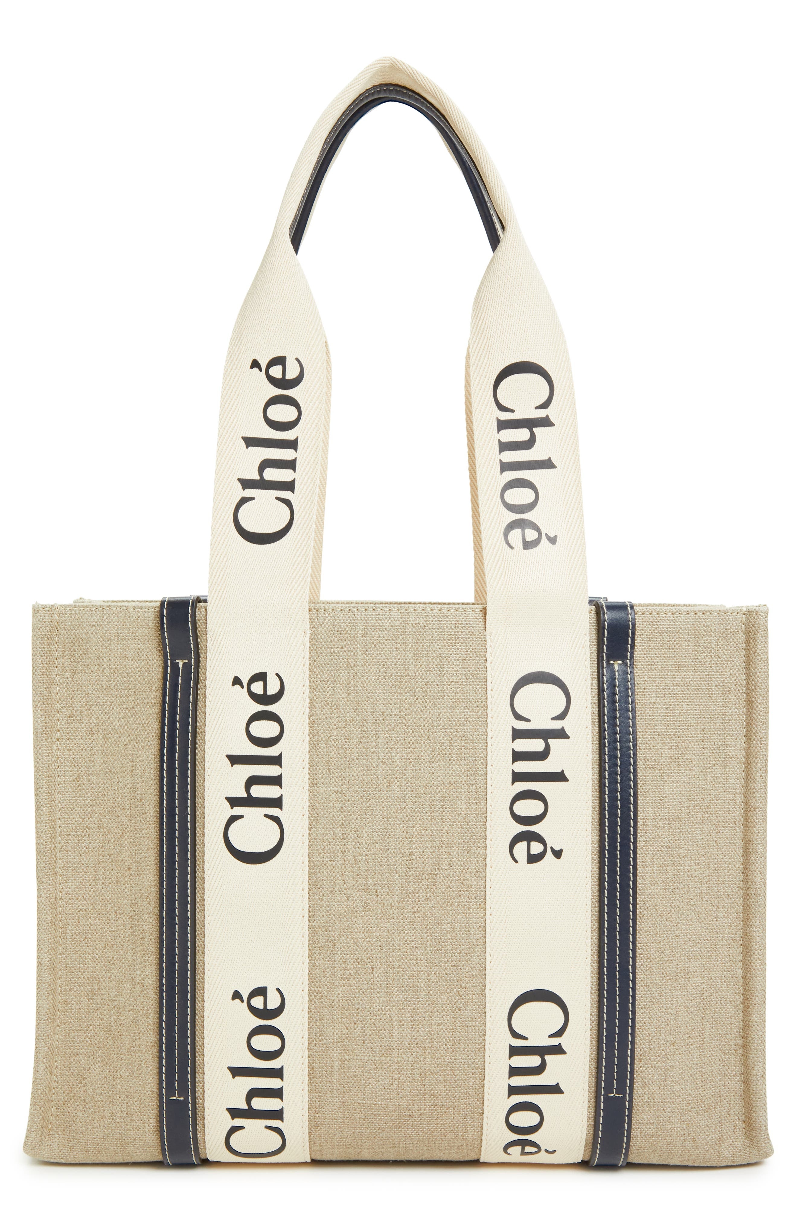 Chloe's classic logo stands out at the sturdy straps of this scaled-down tote crafted from linen canvas and set off with topstitched leather trim. Open top Top carry handles Interior wall pocket Structured silhouette with flat base for stability Unlined 100% linen with leather trim Made in Italy Designer Handbags This brand has B Corp certification, representing business practices with emphasis on social and environmental performance, accountability and transparency This brand meets Nordstrom Responsible Brands criteria: brand adheres to responsible social and environmental practices