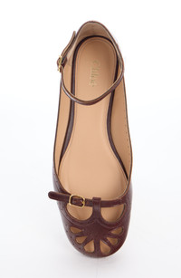 Chemena Kamali brings Chloe's sophisticated style to the forefront of this soft lambskin flat that stands out from the crowd thanks to its unexpected ankle strap and petal-inspired cutouts. Adjustable ankle strap with buckle closure Leather upper and lining/synthetic sole Made in Italy Designer Shoes