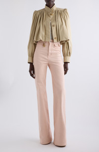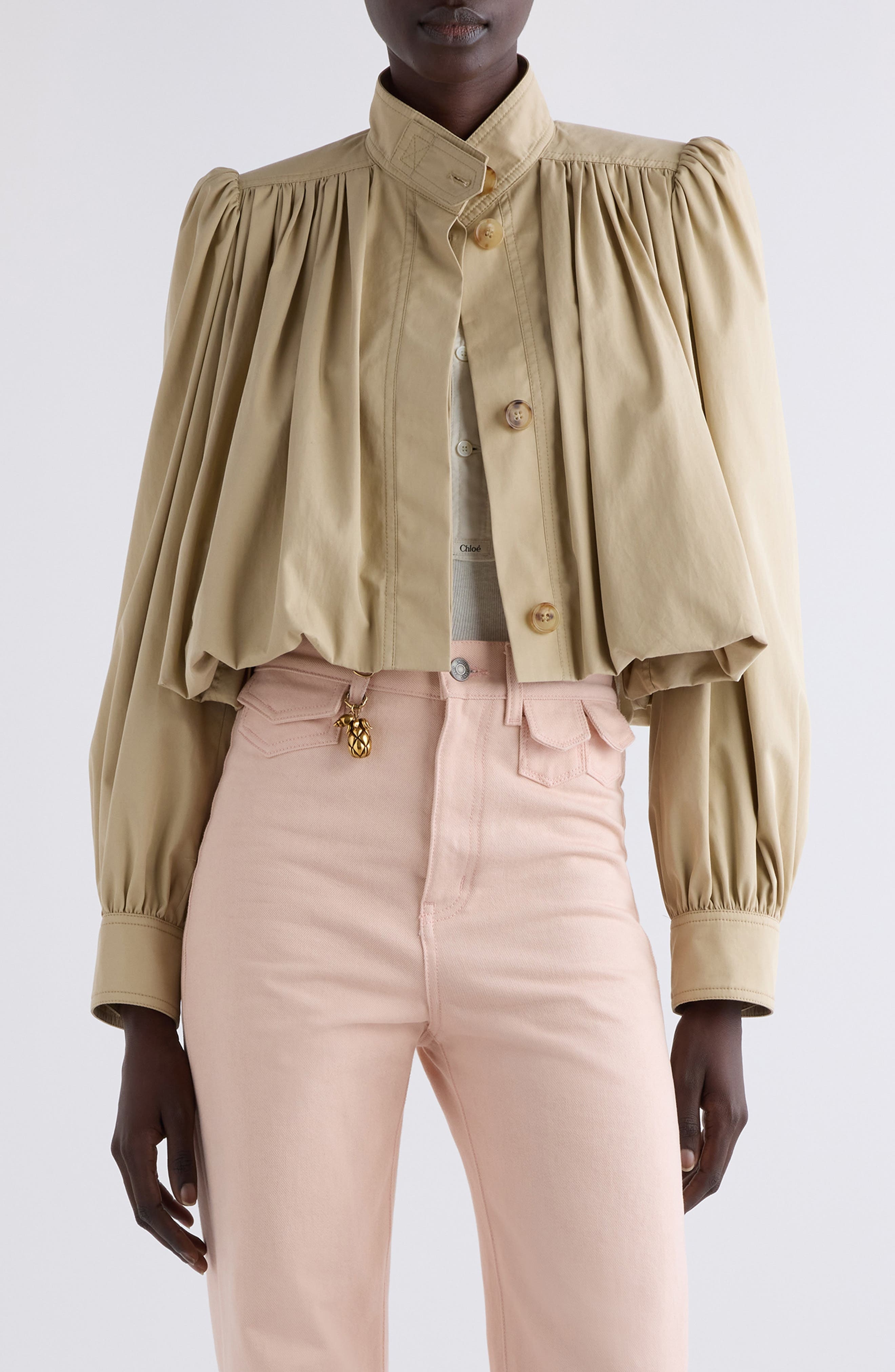 Chloé Puff Sleeve Gathered Cotton Gabardine Crop Jacket in Smoky Beige at Nordstrom