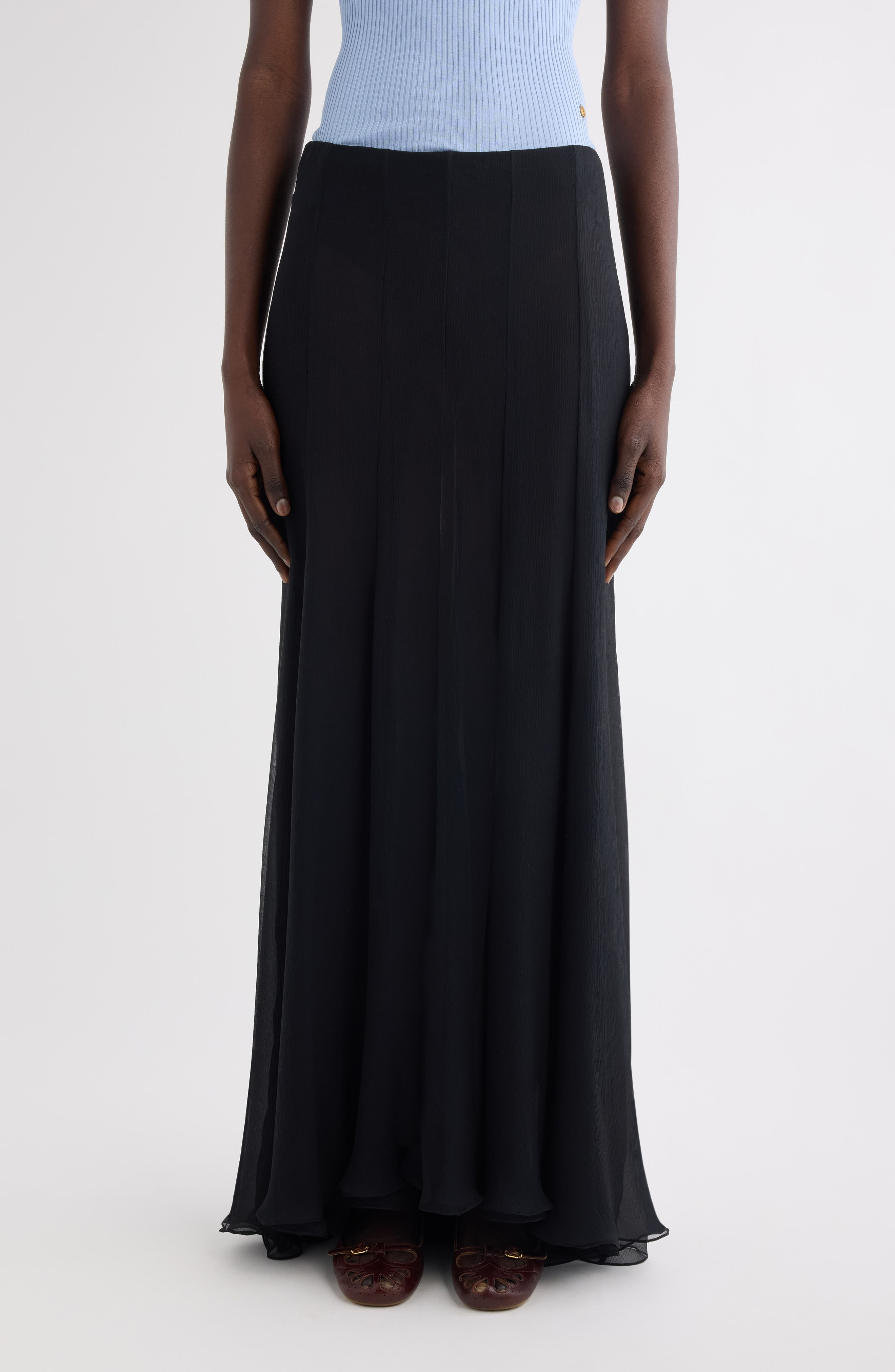 Chloé Semisheer Washed Satin Maxi Skirt in Black at Nordstrom