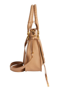 A cult-classic bag with equestrian-inspired styling, this calfskin satchel features wrapped top handles, topstitched accents at the flap and gleaming hardware. Swingy tassels and a removable shoulder strap complete the just-right bag. Top zip closure Rolled top handles; removable, adjustable shoulder strap Slip pocket beneath exterior flap Interior zip and wall pockets Lined Leather Made in Italy Designer Handbags This brand has B Corp certification, representing business practices with emphasis on social and environmental performance, accountability and transparency This brand meets Nordstrom Responsible Brands criteria: brand adheres to responsible social and environmental practices
