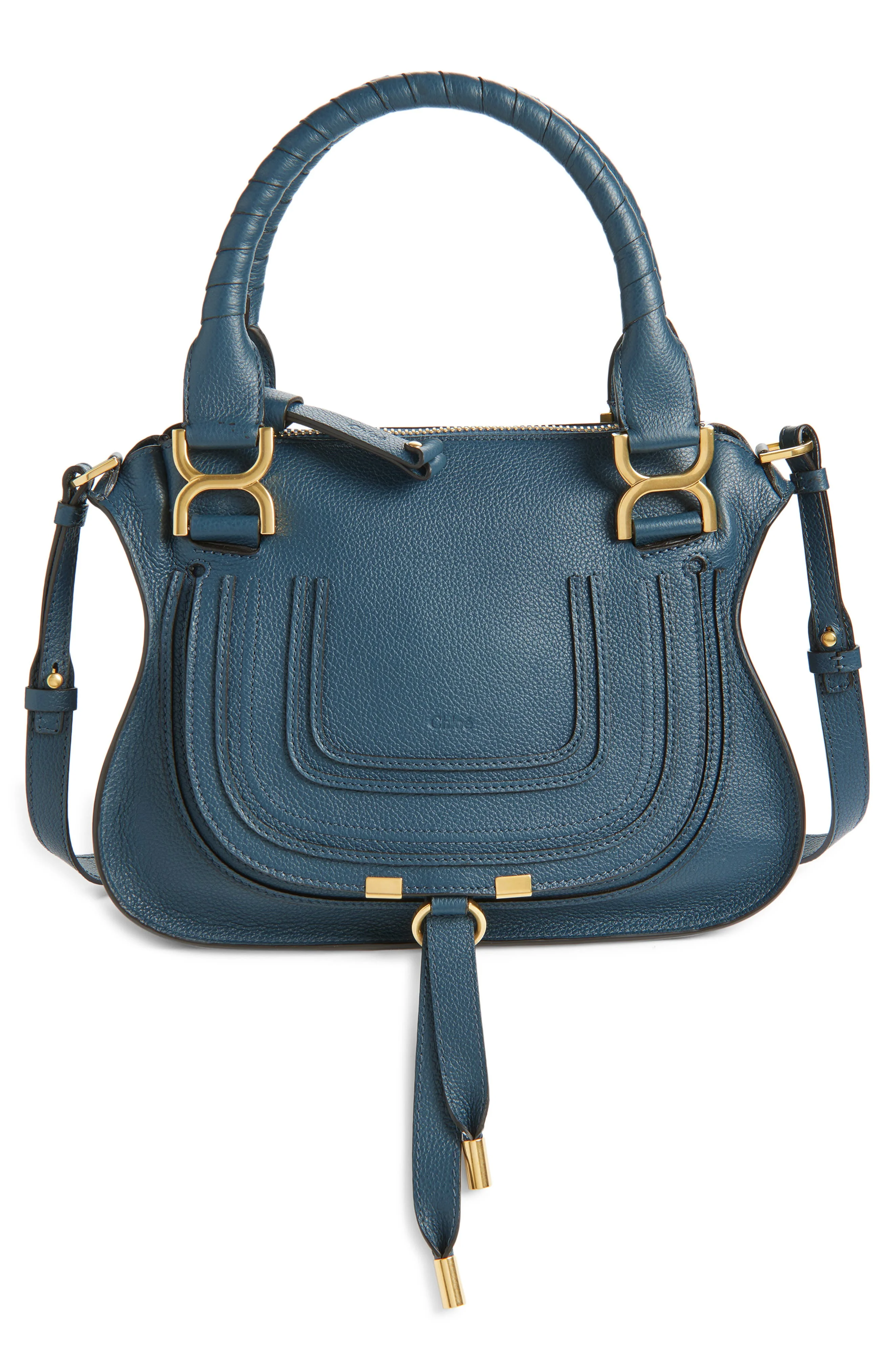 A cult-classic bag with equestrian-inspired styling, this calfskin satchel features wrapped top handles, topstitched accents at the flap and gleaming hardware. Swingy tassels and a removable shoulder strap complete the just-right bag. Top zip closure Rolled top handles; removable, adjustable shoulder strap Slip pocket beneath exterior flap Interior zip and wall pockets Lined Leather Made in Italy Designer Handbags This brand has B Corp certification, representing business practices with emphasis on social and environmental performance, accountability and transparency This brand meets Nordstrom Responsible Brands criteria: brand adheres to responsible social and environmental practices