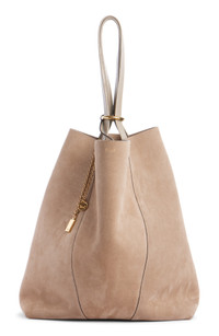 A fresh spin on a classic silhouette, this spacious tote bag is crafted in Italy from supple calfskin suede and stamped with a foiled logo. A dangling chain featuring the maison's Chloe and horse medals offer a house-signature finish. Either carry the bag traditionally or slide the handles inside the logo-engraved ring for a new way to carry. 10.6" x 11.8" x 5.5" 9.1" shoulder strap drop Shoulder straps Leather Made in Italy Designer Handbags