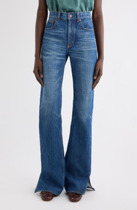 Chloé Split Hem Straight Leg Jeans in Faded Indigo at Nordstrom