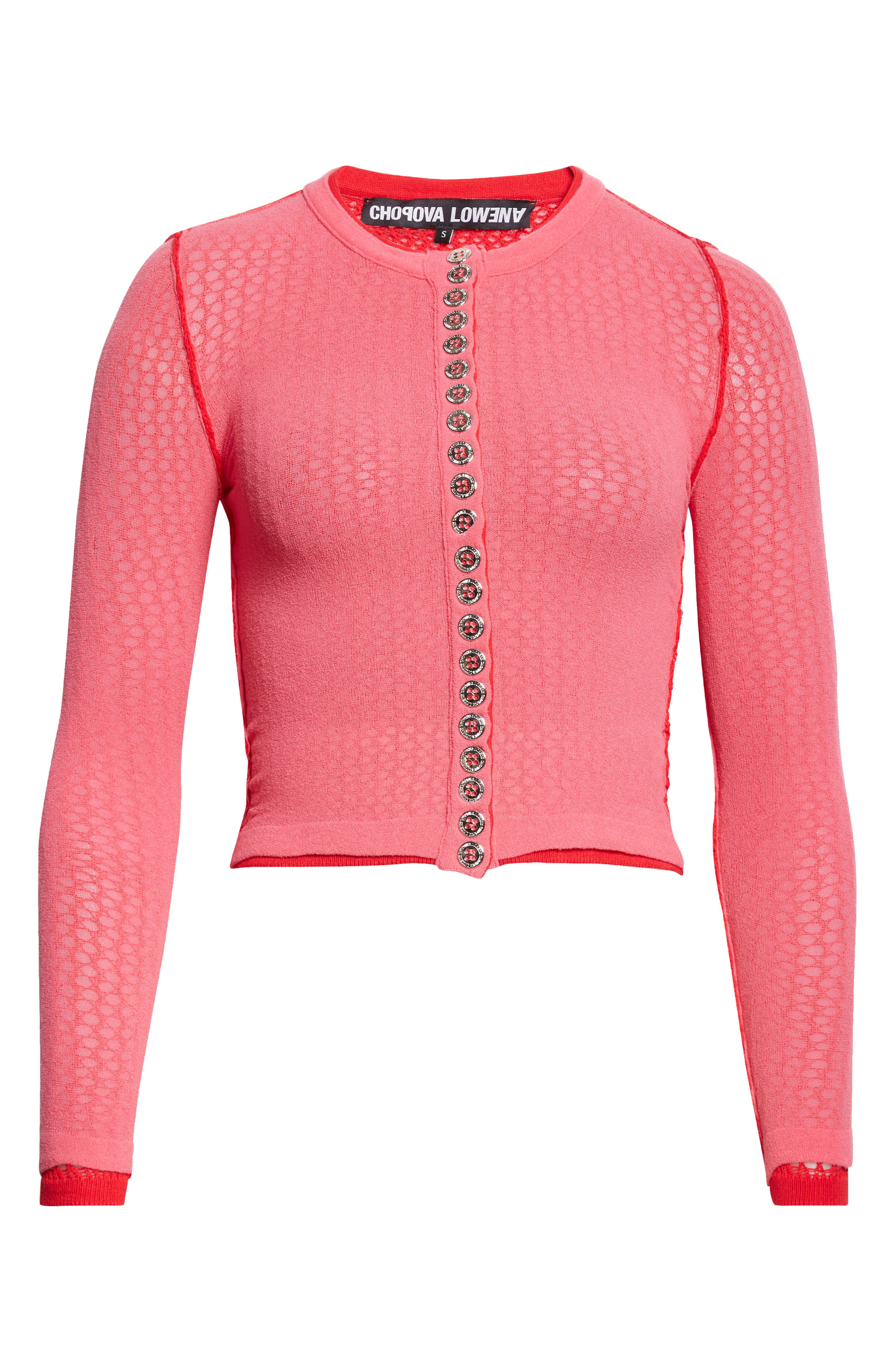 Chopova Lowena Fishnet Layered Crop Cardigan in Pink And Red at Nordstrom