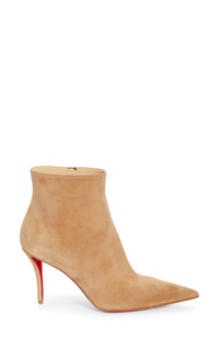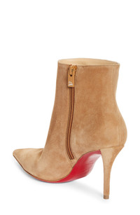 An essential stiletto bootie from the beloved designer boasts suede construction, a pointy toe and the lipstick-red sole that defines the iconic shoe brand. 3" (80mm) heel Side zip closure Wipe with a soft, dry cloth and store in a dust bag Please note the red lacquer on soles will wear off as a result of normal use. To minimize the effect, avoid wearing in wet weather or on abrasive surfaces Leather upper, lining and sole Made in Italy Designer Shoes