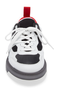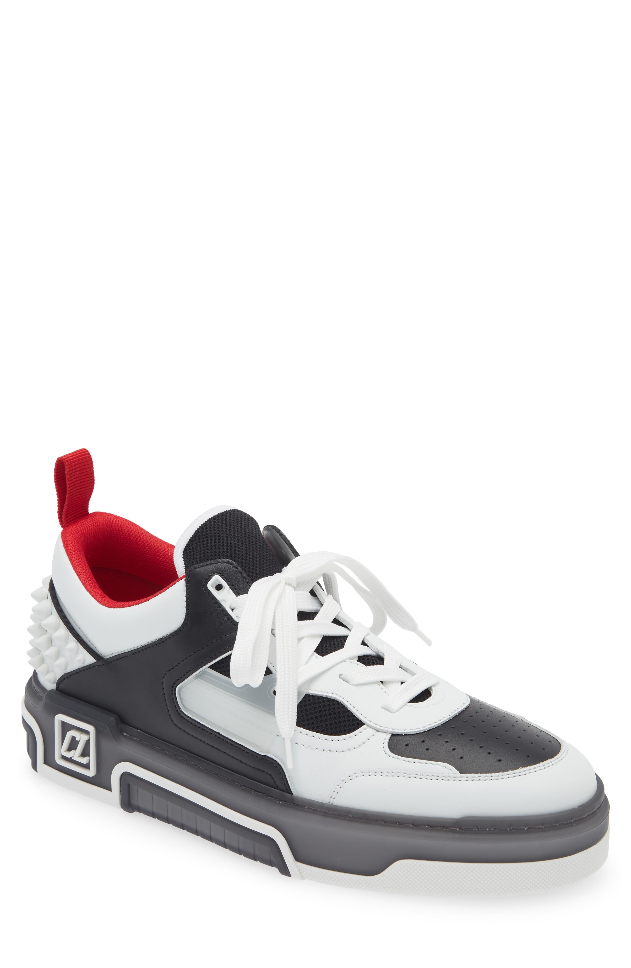 Christian Louboutin Astroloubi Mixed Media Low Top Sneaker in White/Black at Nordstrom