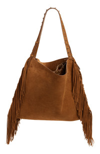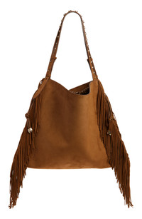 Baggy fringed studded suede shoulder bag Chocolate