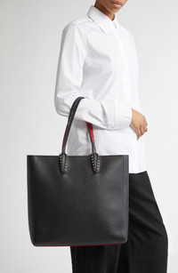 Signature gunmetal spikes encircling the shoulder straps—a hallmark feature of the iconic Cabata tote—highlight the label's attention to detail. It comes in soft, grained calfskin for supple luxury and has tell-tale flashes of red at the sneaker-sole base and interior lining. 13 3/4"W x 15 3/4"H x 5 1/2"D 9 3/4" shoulder strap drop Top zip closure Shoulder straps Sneaker sole base Red-leather lining Leather Made in Italy Designer Handbags