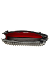 Signature spiky studs bristle this compact crossbody made in Italy from heavily pebbled calfskin leather and slung from a logo webbing strap. A detachable zip pouch keeps small items easily accessible, while a Louboutin-red lining completes the look. Top zip closure Removable, adjustable crossbody strap Exterior zip pocket Removable tethered zip pouch Leather Made in Italy