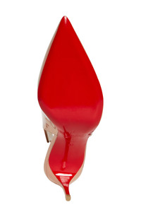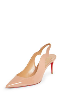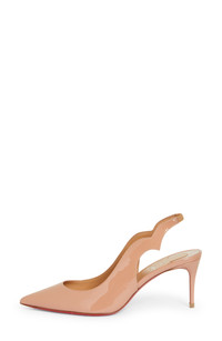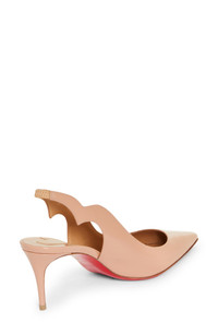 A curvy, scalloped slingback strap and sharp, pointy toe ignite a patent-calfskin pump finished with an iconic Louboutin red sole. 2 3/4" (70mm) heel (size 8.5US/38.5EU) Elasticized slingback strap Wipe with a soft, dry cloth and store in a dust bag Please note the red lacquer on soles will wear off as a result of normal use. To minimize the effect, avoid wearing in wet weather or on abrasive surfaces Leather upper, lining and sole Made in Italy Designer Shoes