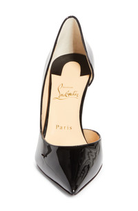Crafted in Italy from glossy patent leather, this chic pump pairs a pointy toe with a half-d'Orsay silhouette for a smart look with tempting allure. A stiletto heel enhances the appeal of Christian Louboutin's iconic red sole, born from a brush with fiery red nail lacquer. 3 1/4" (85mm) heel Wipe with a soft, dry cloth and store in a dust bag Please note the red lacquer on soles will wear off as a result of normal use. To minimize the effect, avoid wearing in wet weather or on abrasive surfaces Leather upper, lining and sole Made in Italy Designer Shoes
