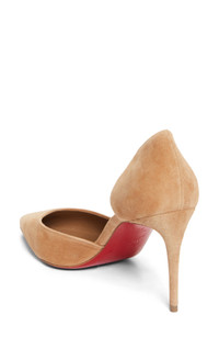Crafted in Italy from velvety suede, this chic pump pairs a pointy toe with a half-d'Orsay silhouette for a smart look with tempting allure. A stiletto heel enhances the appeal of Christian Louboutin's iconic red sole, born from a brush with fiery red nail lacquer. 3 1/4" (85mm) heel Wipe with a soft, dry cloth and store in a dust bag Please note the red lacquer on soles will wear off as a result of normal use. To minimize the effect, avoid wearing in wet weather or on abrasive surfaces Leather upper, lining and sole Made in Italy Designer Shoes