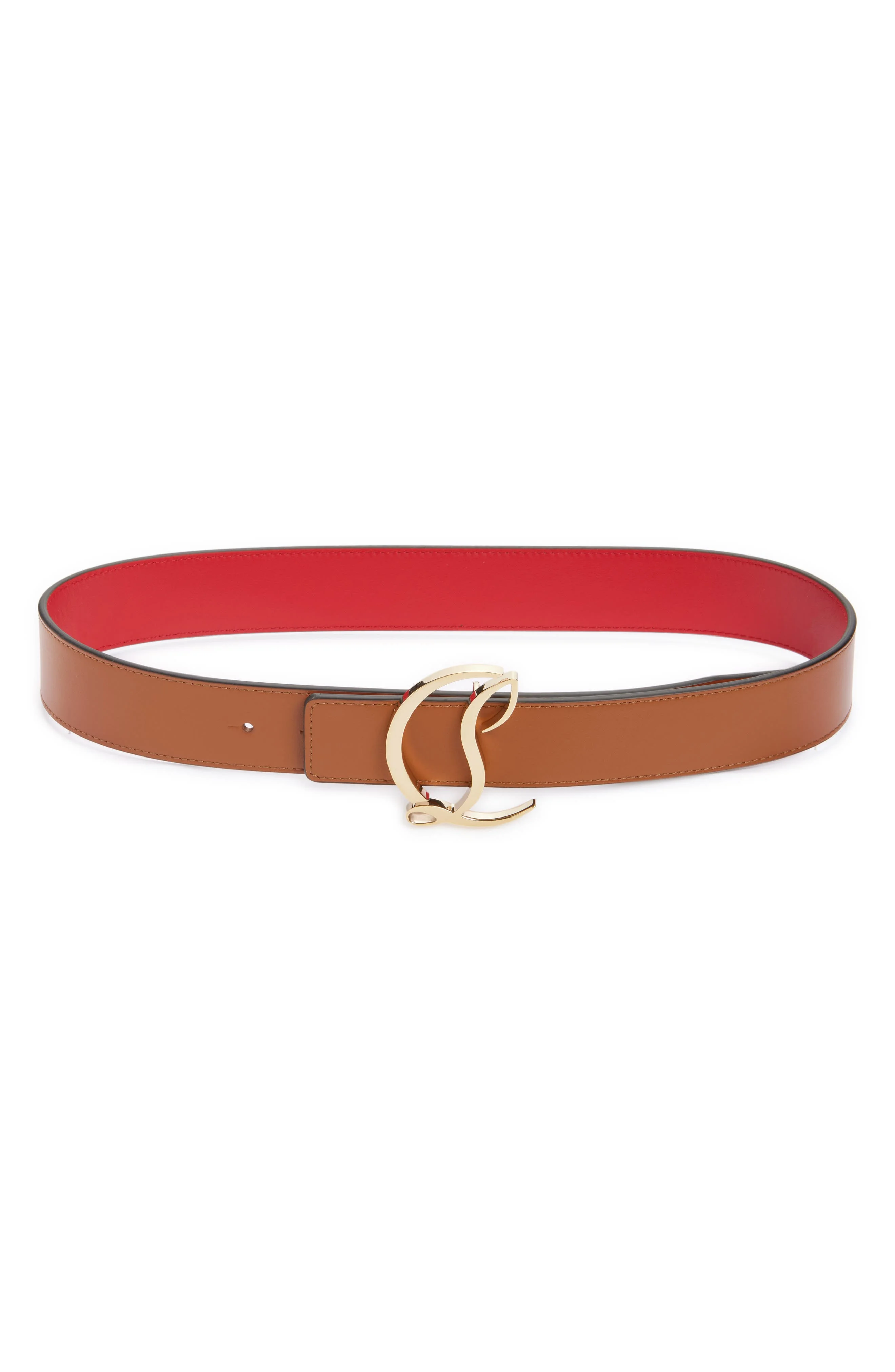 Christian Louboutin Logo Buckle Leather Belt in Cuoio/Gold at Nordstrom