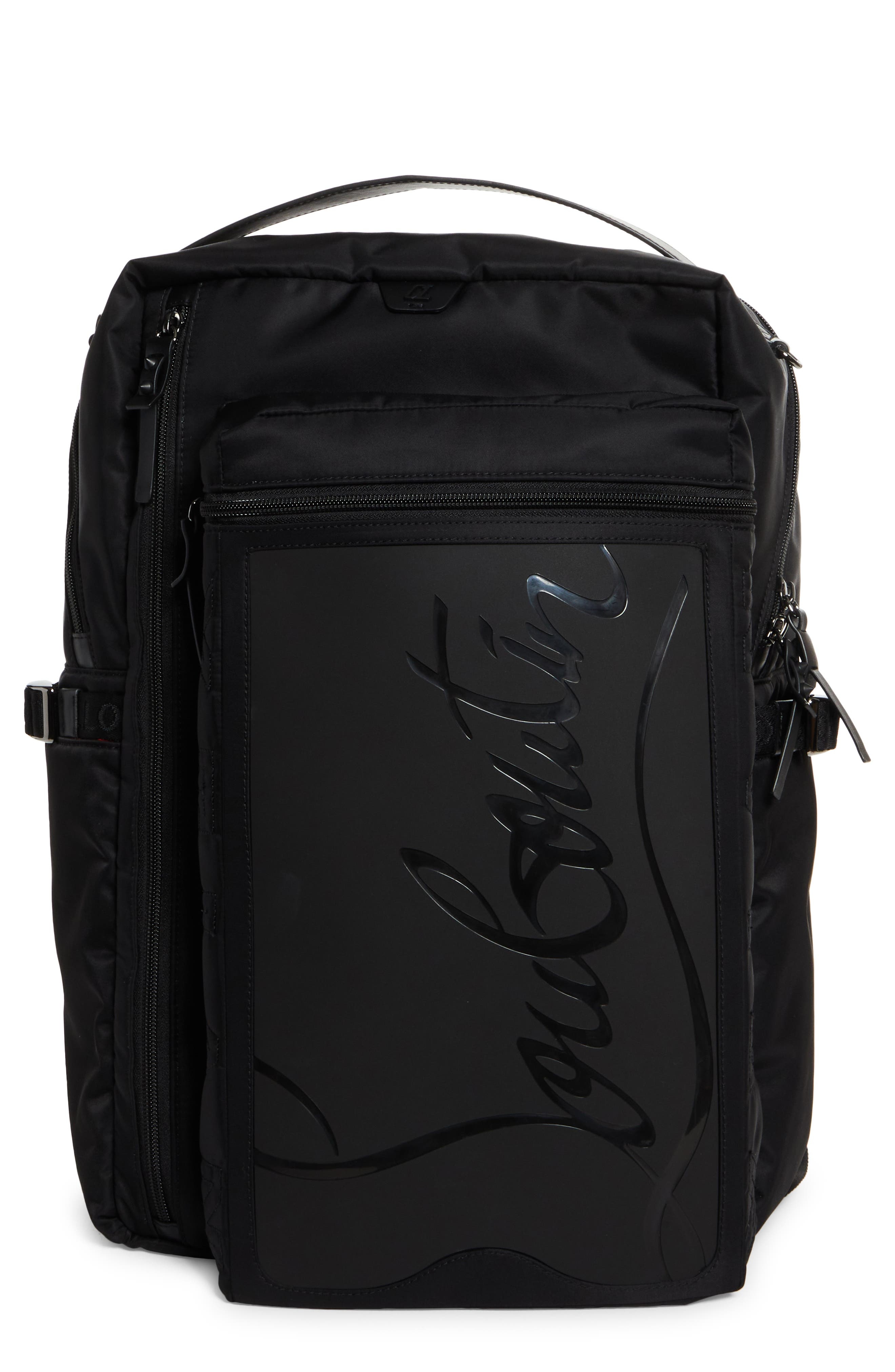 Christian Louboutin Loubideal Canvas & Rubber Backpack in Black/Black/Black at Nordstrom