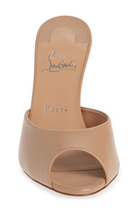 A minimalist silhouette in rich napa leather makes this peep-toe sandal perched on a stiletto heel a fabulous night-out option. Christian Louboutin's iconic red sole—born from a fateful brush with red nail lacquer—lends distinctive brilliance to every step. 3 1/2" heel 89mm (size 8.5) Wipe with a soft, dry cloth and store in a dust bag Please note the red lacquer on soles will wear off as a result of normal use. To minimize the effect, avoid wearing in wet weather or on abrasive surfaces Leather upper, lining and sole Made in Italy Designer Shoes