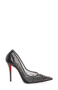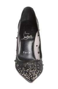This sheer mesh version of the iconic Miss Z pump is scattered with crystals and dome studs and retains the same signatures that made this shoe an instant favorite—the elongated toe box and cleverly designed stiletto shaped to create the illusion of extra height. A new Everlasting crimson sole ensures lasting vibrancy for this sought-after style. 4" (100mm) heel Wipe with a soft, dry cloth and store in a dust bag Everlasting Red Sole is made with an innovative coating that ensures fade-resistance and lasting vibrancy for the signature Louboutin red Textile and leather upper and lining/leather sole Made in Italy Designer Shoes