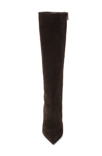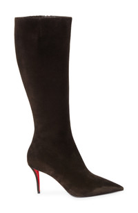 This knee-high-boot version of the instant-favorite Miss Z features a slightly elongated pointy toe and is crafted in Italy from soft calfskin suede. It's lifted by a cleverly designed stiletto shaped to create the illusion of being higher and reveals the new Everlasting crimson sole from every angle. 3" (80mm) heel Side zip closure Wipe with a soft, dry cloth and store in a dust bag Everlasting Red Sole is made with an innovative coating that ensures fade-resistance and lasting vibrancy for the signature Louboutin red Leather upper and lining/leather and synthetic sole Made in Italy Designer Shoes