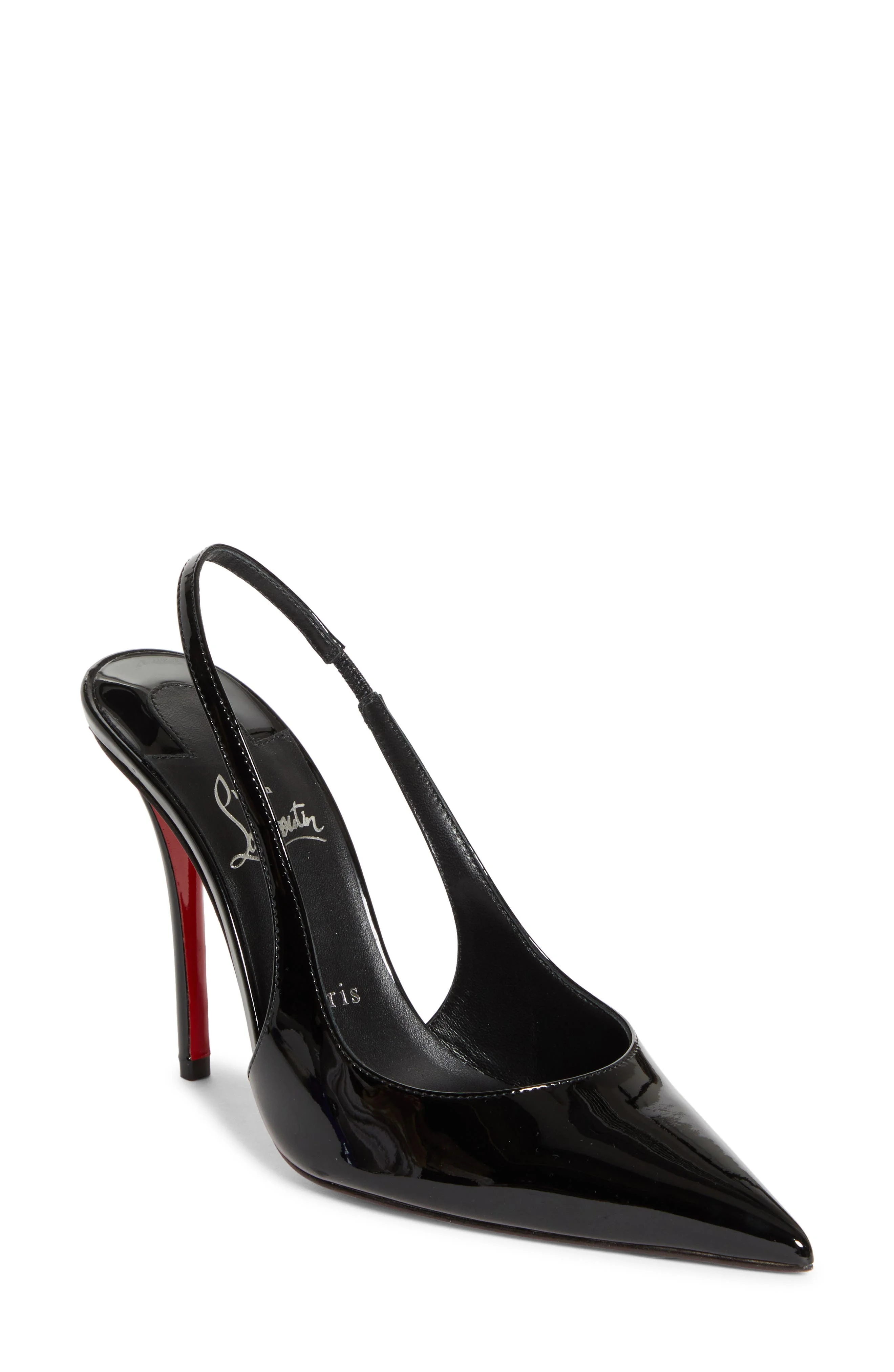 This glossy patent-leather version of the iconic Miss Z pump retains the same signatures that made this shoe an instant favorite—the elongated toe box and cleverly designed stiletto shaped to create the illusion of extra height. A new Everlasting crimson sole ensures lasting vibrancy for this sought-after style. 4" (100mm) heel Elasticized slingback strap Wipe with a soft, dry cloth and store in a dust bag Everlasting Red Sole is made with an innovative coating that ensures fade-resistance and lasting vibrancy for the signature Louboutin red Padded footbed Leather upper, lining and sole Made in Italy Designer Shoes
