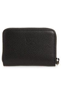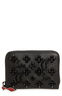 A luxe coin purse embellished with gleaming studs and logo emblems opens to reveal a Louboutin red leather interior and a handy wall pocket. Zip-around closure Interior wall pocket Calfskin leather Made in Italy Designer Handbags