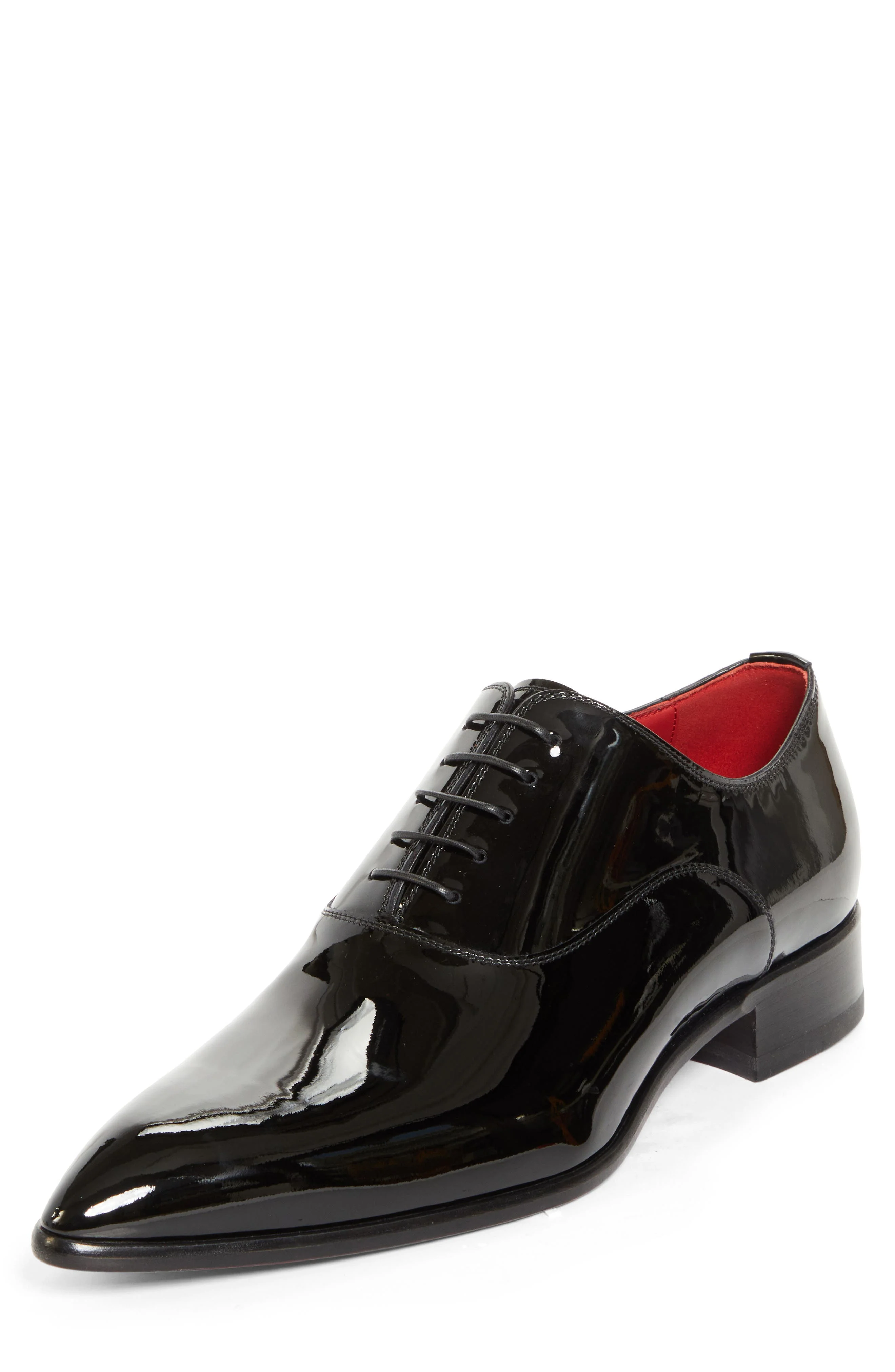 A pointy toe adds a rock-'n'-roll aesthetic to this patent-calfskin oxford with Christian Louboutin's iconic red sole underscoring each step with a flash of distinctive brilliance. Lace-up style Wipe with a soft, dry cloth and store in a dust bag Please note the red lacquer on soles will wear off as a result of normal use. To minimize the effect, avoid wearing in wet weather or on abrasive surfaces Leather upper, lining and sole Made in Italy Designer Shoes