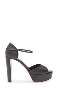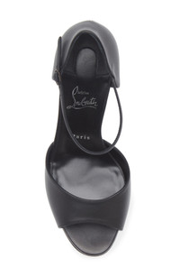A lofty demi-block heel and chunky platform add leg-lengthening lift to this peep-toe sandal finished with that iconic Louboutin-red sole. 5" (130mm) heel; 1 1/2" platform; 3 1/2" heel slope Adjustable ankle strap with buckle closure Wipe with a soft, dry cloth and store in a dust bag Please note the red lacquer on soles will wear off as a result of normal use. To minimize the effect, avoid wearing in wet weather or on abrasive surfaces Leather upper, lining and sole Made in Italy Designer Shoes