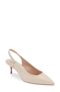 A Loubi-red sole adds a flash of signature crimson to a sporty slingback pump complete with delicate monogram hardware. 2 1/4" (55mm) heel (size 38.5) Wipe with a soft, dry cloth and store in a dust bag Please note the red lacquer on soles will wear off as a result of normal use. To minimize the effect, avoid wearing in wet weather or on abrasive surfaces Elasticized slingback strap Leather upper, lining and sole Made in Italy Designer Shoes