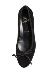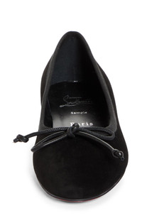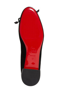 A delicate bow details the vamp of a refined ballet flat fashioned from velvety Italian suede with a signature Loubi-red sole. Wipe with a soft, dry cloth and store in a dust bag Please note the red lacquer on soles will wear off as a result of normal use. To minimize the effect, avoid wearing in wet weather or on abrasive surfaces Leather upper, lining and sole Made in Italy Designer Shoes