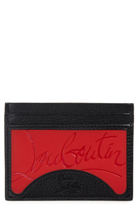 A logo-stamped inset pops in color and texture at the side of a slim card case made of richly pebbled leather. 4"W x 3"H x 1/4"D. Four card slots Leather/TPU Lined Made in Italy