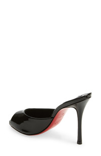 Patent calfskin leather brings sophisticated shine to this peep-toe sandal perched on a willowy stiletto for added allure. 4" (100mm) heel Wipe with a soft, dry cloth and store in a dust bag Please note the red lacquer on soles will wear off as a result of normal use. To minimize the effect, avoid wearing in wet weather or on abrasive surfaces Leather upper, lining and sole Made in Italy Women's Designer Shoes