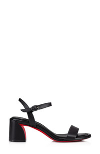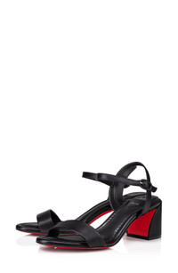 A minimalist silhouette balances the bold, architectural heel of this lambskin-leather sandal grounded by that iconic Louboutin-red sole. 2 1/4" (57mm) heel (size 5US/35EU) Adjustable quarter strap with buckle closure Wipe with a soft, dry cloth and store in a dust bag Please note the red lacquer on soles will wear off as a result of normal use. To minimize the effect, avoid wearing in wet weather or on abrasive surfaces Leather upper, lining and sole Made in Italy Designer Shoes