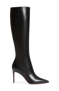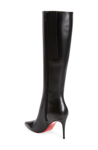 A streamlined design puts the focus on the sharp pointy-toe silhouette, supple leather and Louboutin-red sole of this ultra-versatile tall boot. 3 1/4" (83mm) heel; (size 8.5US/38.5EU) 16" shaft; 13" calf circumference. Narrow calf Side zip closure Wipe with a soft, dry cloth and store in a dust bag Please note the red lacquer on soles will wear off as a result of normal use. To minimize the effect, avoid wearing in wet weather or on abrasive surfaces Leather upper, lining and sole Made in Italy Women's Designer Shoes