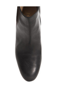 A curvy architectural heel shows off a glimpse of the Louboutin-red sole on this walkable, around-town bootie done in supple Italian leather. 2 1/4" (55 mm) heel (size 38.5) 4 1/2" shaft Side zip closure Wipe with a soft, dry cloth and store in a dust bag Please note that the red lacquer on the soles will wear off as a result of normal use. To minimize the effect, avoid wearing these shoes in wet weather or on abrasive surfaces Leather upper, lining and sole Made in Italy Women's Designer Shoes