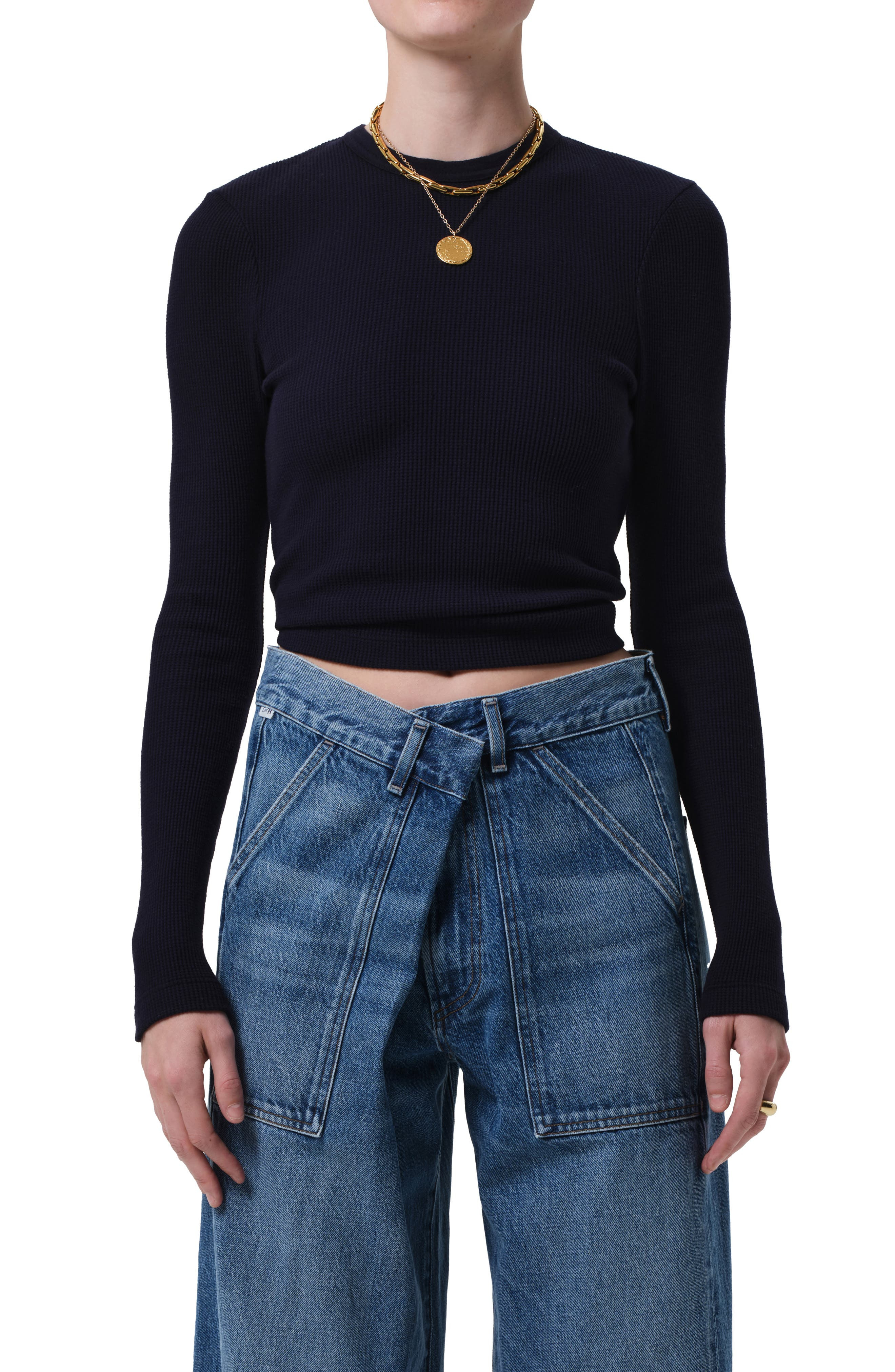 Citizens of Humanity Pilar Long Sleeve Recycled Cotton Waffle Knit T-Shirt in Navy at Nordstrom