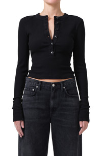 Citizens of Humanity Varra Rib Henley in Black at Nordstrom