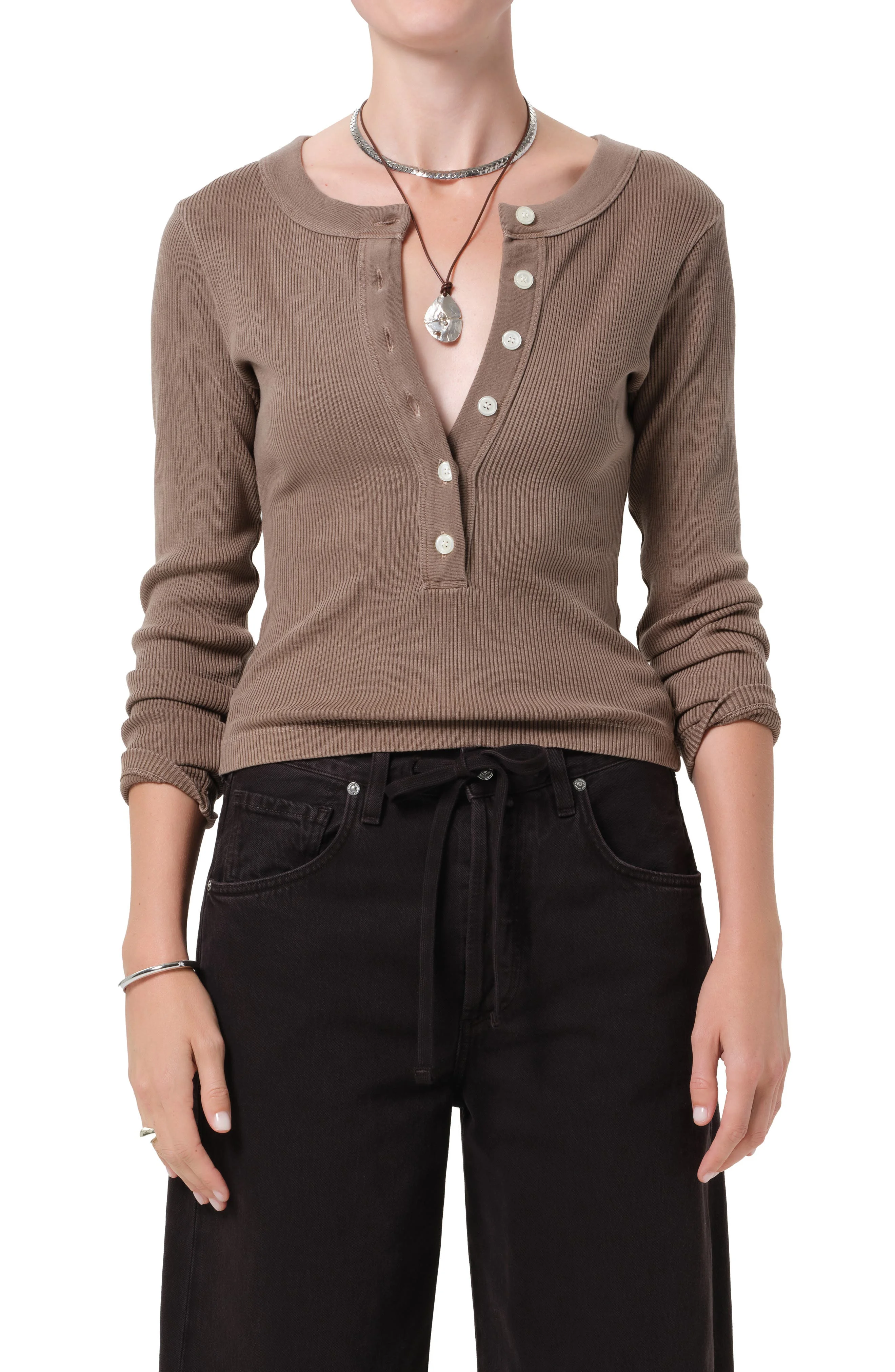 Citizens of Humanity Varra Rib Henley in Cocoa Md Grey Brown at Nordstrom