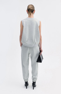 A modern update to the classic crewneck, this sleeveless sweatshirt is crafted from spongey cotton and tencel knit with a brushed interior. Its sculptural side openings and structured drape subtly reference the clean lines of scuba jersey. Designed with a relaxed fit, high neckline, and subtle A-line shape, it‚Aos finished with wide ribbed trim for a refined, architectural silhouette. Heather Grey 60% Cotton 40% Tencel True to size.