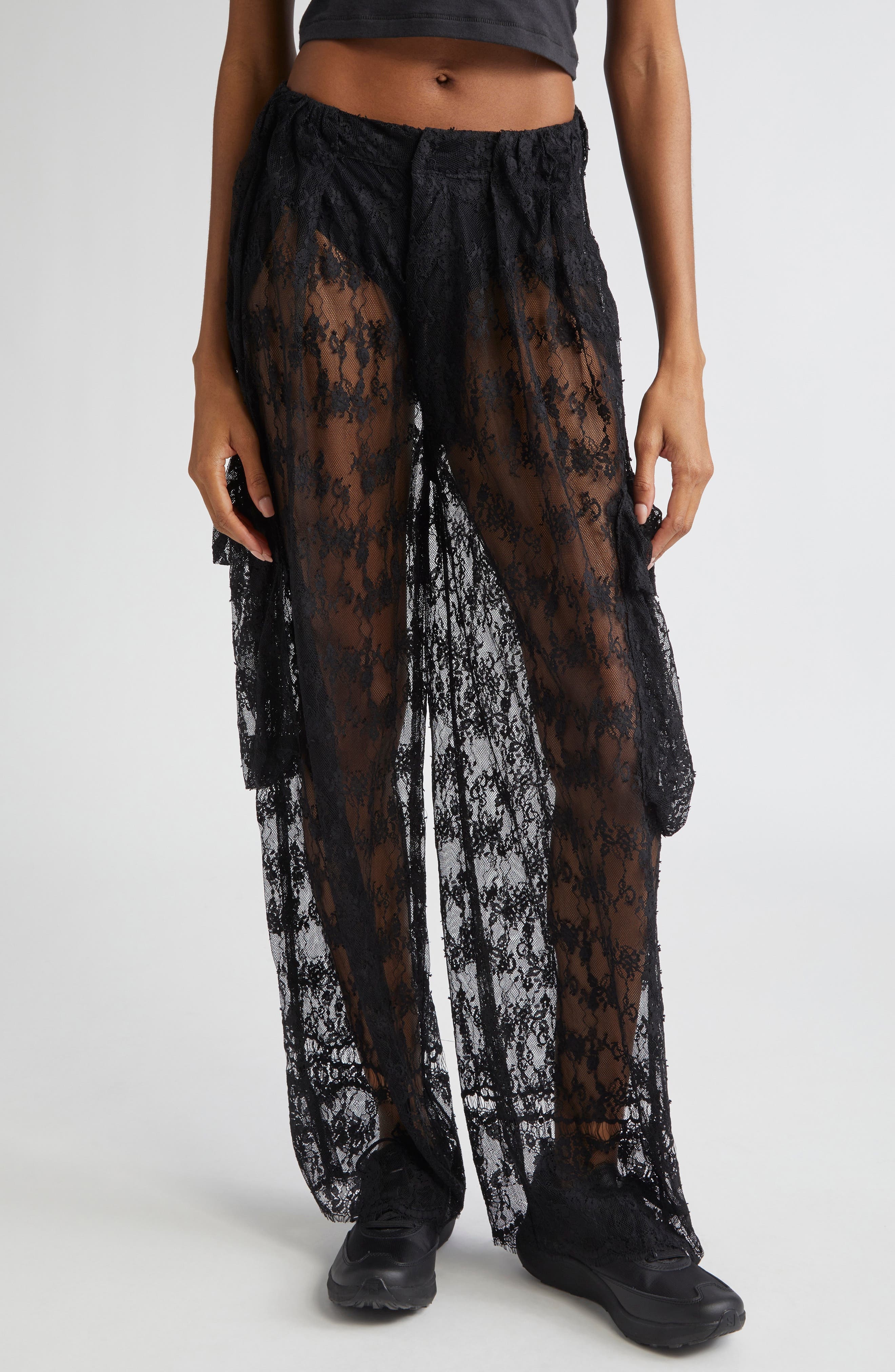 BLACK LACE PLEATED CARGO PANT