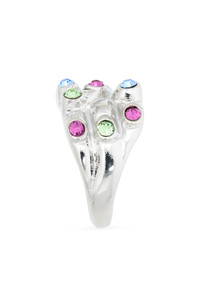 A recycled-pewter band with a molten texture highlights Hillary Taymour's passion for artisanal fabrication with this stacked-illusion ring glittering with Swarovski crystals. Recycled pewter/crystal Made in the USA
