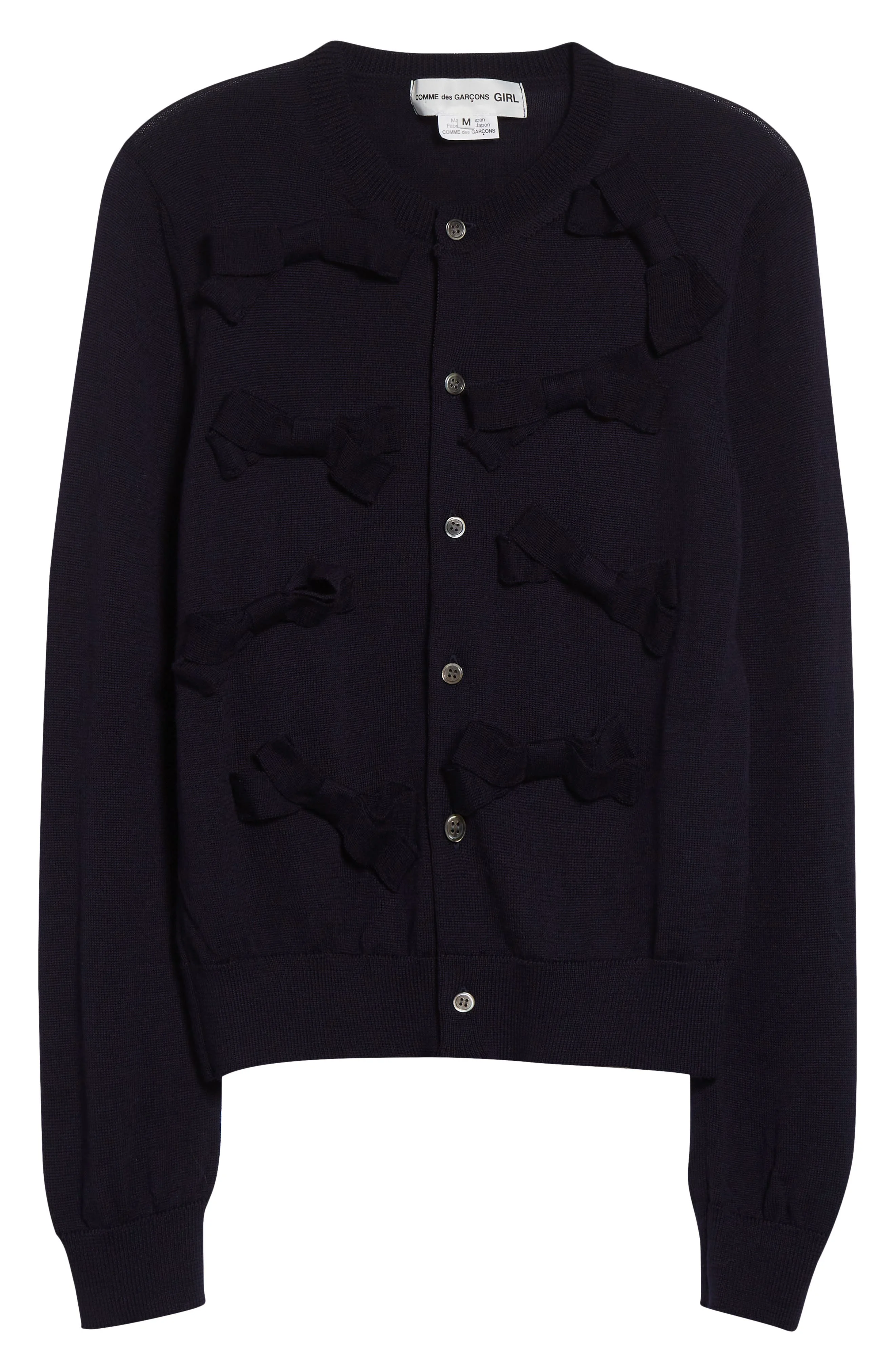 Comme des Garçons Girl Ribbon Bow Wool Cardigan in Navy at Nordstrom